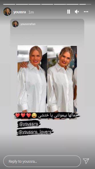 وظهرت يسرا فى الصورة بقميص أبيض أنيق، وتغزلت فيها إحدى المعجبات قائلة: "جالها بيموتني".