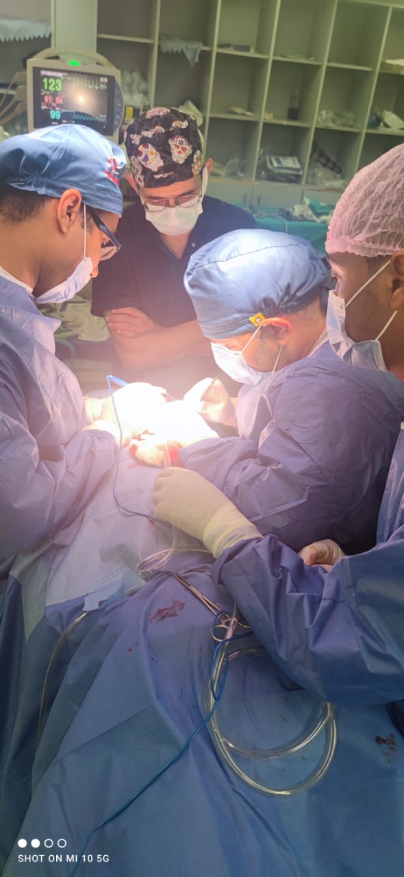 كما قام فريق جراحة الأنف والأذن بإعادة تقييم ورتق القطع الكامل بالقصبة الهوائية، مع إجراء دعامة داخلية للقصبة الهوائية للحفاظ على مسار الهواء الطبيعى للمريض، وعمل فتحة تنفس خارجية للمريض، وبفضل العناية الإلهية تم إنقاذ المريض ونقله للقسم الداخلى لتلقي الرعايه الصحية الشامله له.