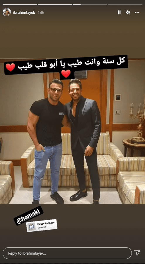 هنأ الإعلامى إبراهيم فايق، المطرب محمد حماقي بعيد ميلاده، ونشر صورة تجمعهما من خلال خاصية استورى عبر موقع التواصل الاجتماعى “إنستجرام”.