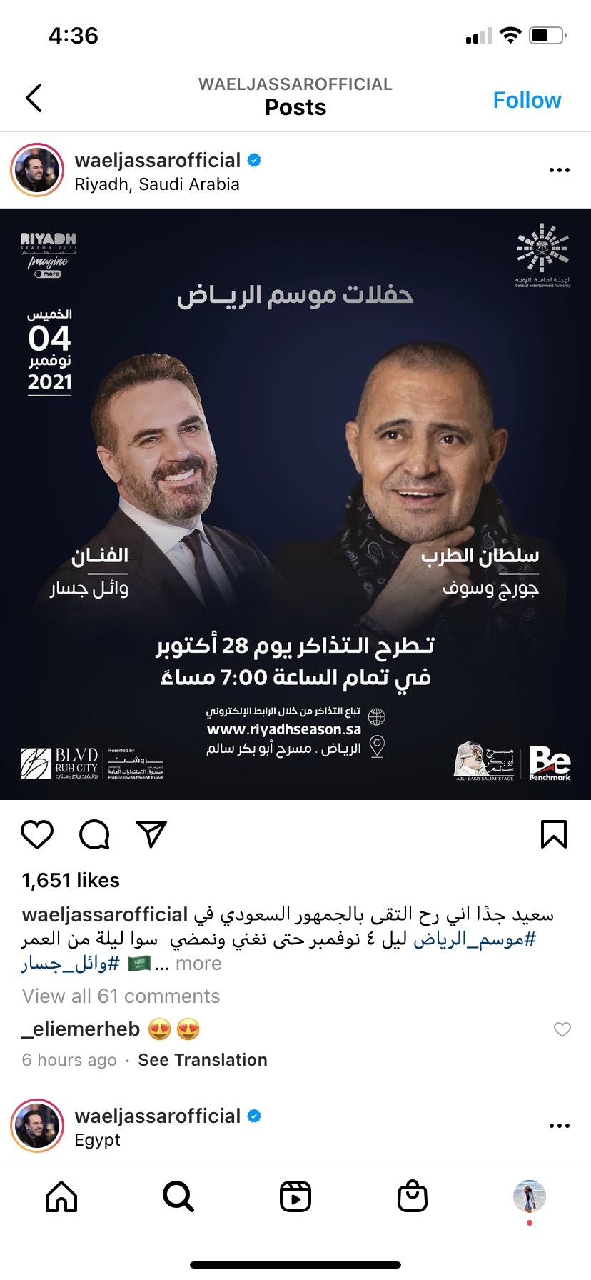 أشعل المطرب وائل جسار حفل مهرجان الموسيقى العربية وسط حضور جماهيري كبير حيث رفع الحفل شعار كامل العدد.
