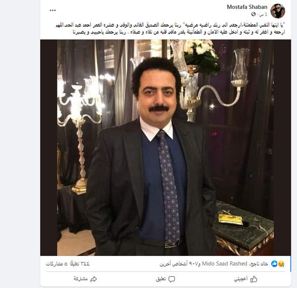كتب الفنان مصطفى شعبان عبر فيس بوك قائلا: "يا أيتها النفس المطمئنة، أرجعي إلى ربك راضية مرضية" ربنا يرحمك الصديق الغالي والوفي وعشرة العمر أحمد عبدالحي، اللهم ارحمه واغفر له و ثبته و أدخل عليه الأمان والطمأنينة بقدر مافى قلبه من نقاء و صفاء، ربنا يرحمك ياحبيبي ويصبرنا".