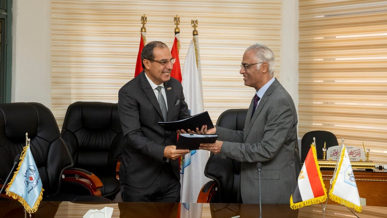 وقع الدكتور ياسر مصطفى مدير معهد بحوث البترول المصري ممثلا عن المعهد بحضور الدكتور جلال سالم نائب رئيس الجامعة لشئون التعليم والطلاب والدكتورة راوية رزق نائب رئيس الجامعة لشئون الدراسات العليا والبحوث ومن معهد بحوث البترول المصرى المهندس محمد الحسينى مدير مشروع التحول الرقمى بالمعهد.