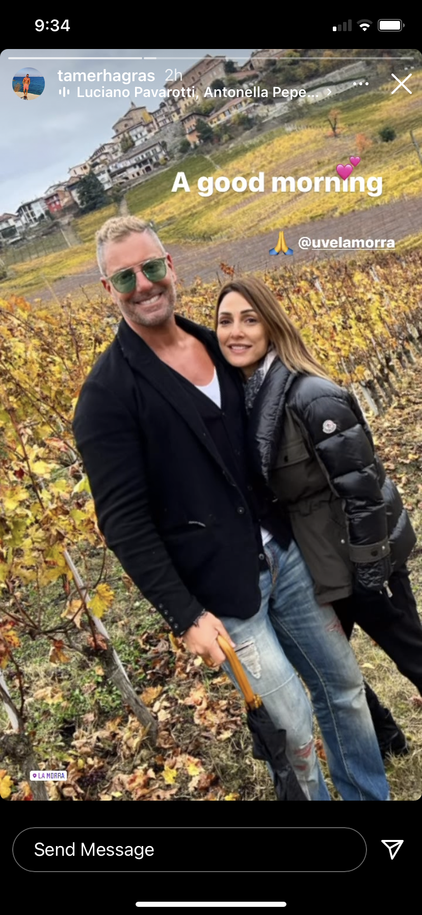 و ظهر تامر هجرس بصورة رومانسية مع زوجته و علق عليها :"صباح الخير" مما اثار اعجاب متابعيه .
