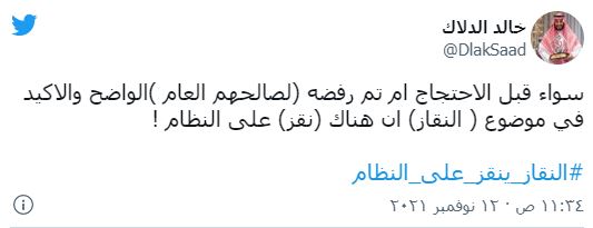 بينما علّق الإعلامي الرياضي، خالد الدلاك، عبر حسابه الشخصي على مواقع التواصل الاجتماعي “تويتر” قائلاً : ”سواء قبل الاحتجاج أم تم رفضه (لصالحهم العام) الواضح والأكيد في موضوع (النقاز) أن هناك (نقز) على النظام”.