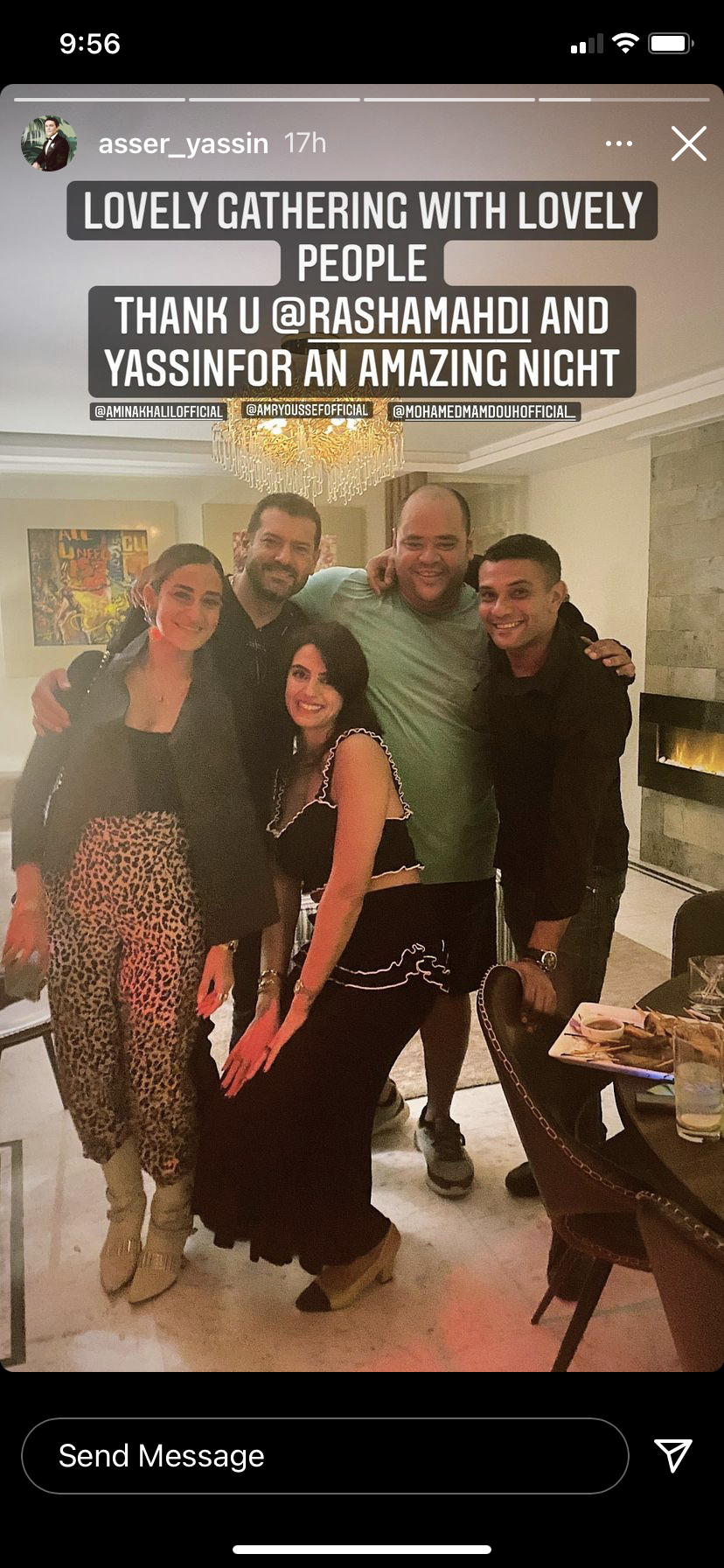و ظهر آسر ياسين في الصورة بصحبة عدد من النجوم من ضمنهم عمرو يوسف و محمد ممدوح و أمينة خليل مما أثار إعجاب متابعيه.