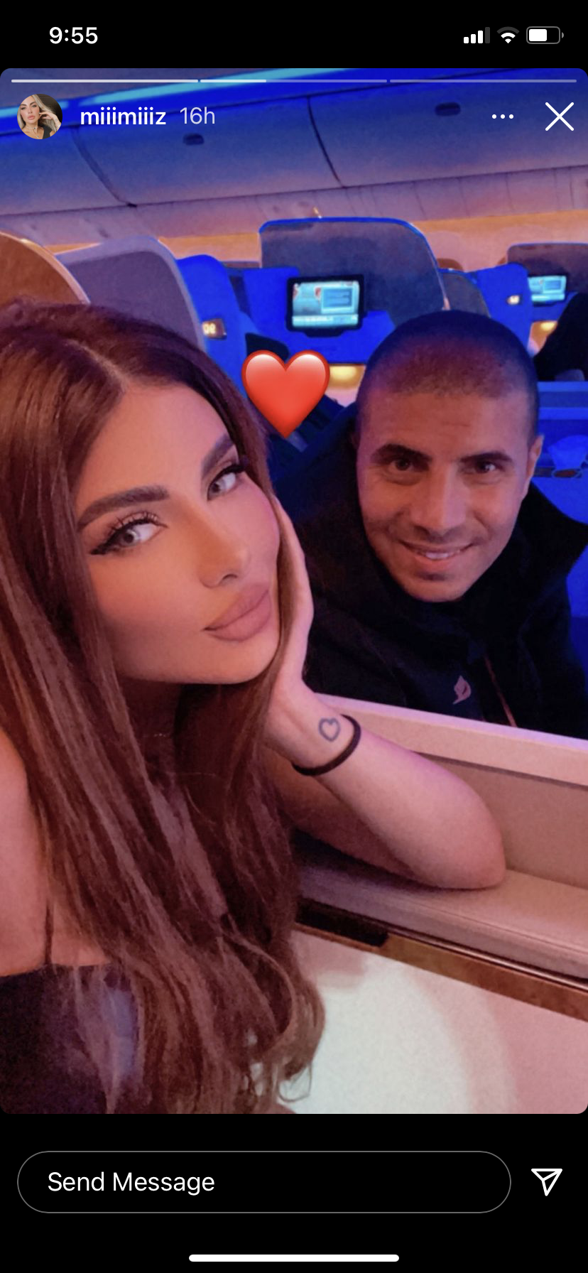 و ظهرت ميناس بإطلالة رومانسية برفقة زوجها من الطائرة ، مما حازت إعجاب متابعيها.