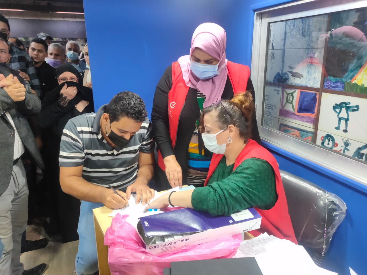 وأوضح أن المواطن بعد التسجيل على التابلت يحصل على تسلسل مكون من 20 رقمًا، ثم يحصل على اللقاح حينها وشهادة التلقيح مختومة من وزارة الصحة والسكان، مشيرًا إلى أن مواعيد العمل داخل الكشك تبدأ من 12 ظهرًا.