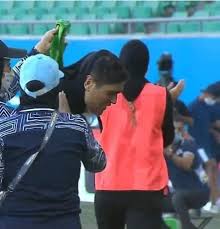 ملامح رجولية حادة، وشعر قصير أسفل الحجاب، أثارت دهشة الجمهور الرياضي في إيران فور تداول صور المنتخب النسائي لكرة القدم، وظهور حارسة المرمى للفريق بهيئة غريبة، دفعت رئيس الاتحاد الأردني لكرة القدم، بتقديم شكوى رسمية للتحقق من جنس حارسة المرمى لبيان كونها رجل أو امرأة.
