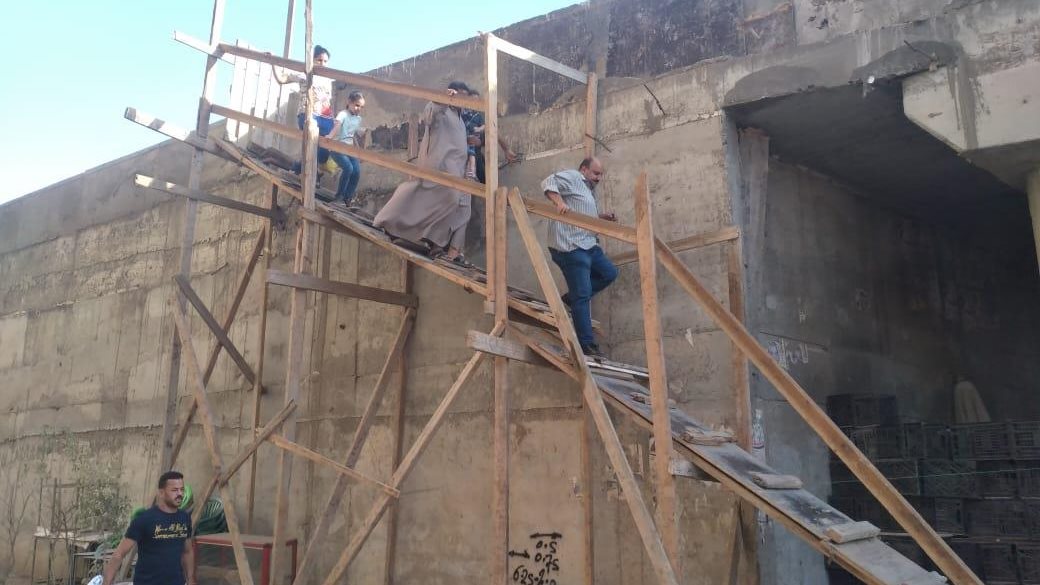 بعد أن أنهت الشركات العاملة بتطوير الطريق الطريق الدائري أعمالها في منطقة المرج، قامت برفع السقالات، ووضع سلم خشبي للصعود إلى الطريق بعد تباعد مسافات السلالم على الطريق، فقام الأهالي بتجميع مبالغ مالية لتركيب سُلم خشبي يسهل صعود الأهالي إلى الدائري.