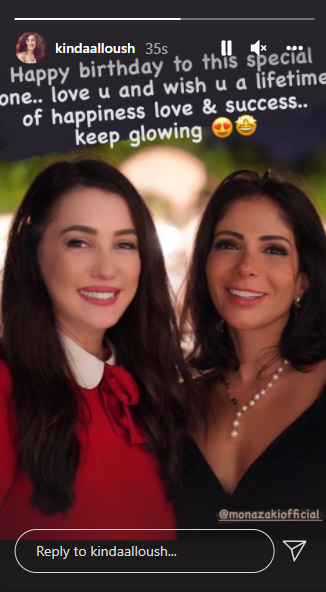 وظهرت كندة علوش في الصورة برفقة الفنانة مني زكي، وهنأتها بعيد ميلادها قائلة:"كل سنة وانتي طيبة، انا بحبك و اتمني لكي حياة سعيدة".