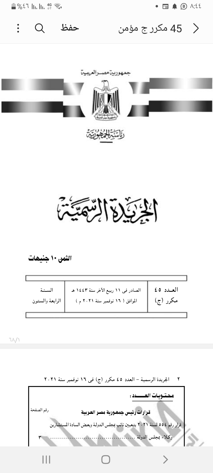 كما تضمن القرار تعيين بعض المستشارين وكلاء بمجلس الدولة.