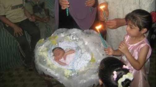 حفل كبير، وطفل رضيع أبن الـ 7 أيام، موضوع داخل «منخُل»، مزين بالورود، وبجانبها «قُلة» بها ماء في إناء واسع، بداخله أيضًا ماء و 7 أنواع من حبوب « الفول والأرز» تيمنًا بالعمر المديد والخير الوفير للمولود.