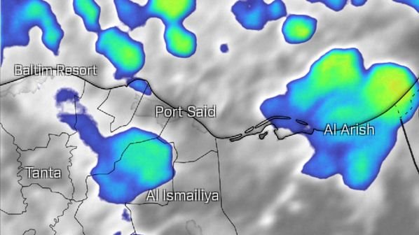 ويشهد طقس اليوم، أيضا، استمرار فرص الأمطار خفيفة إلى المتوسطة على مناطق متفرقة من منطقة خليج السويس وسيناء (رأس غارب - الزعفرانة - نخل - كاترين) على فترات متقطعة.