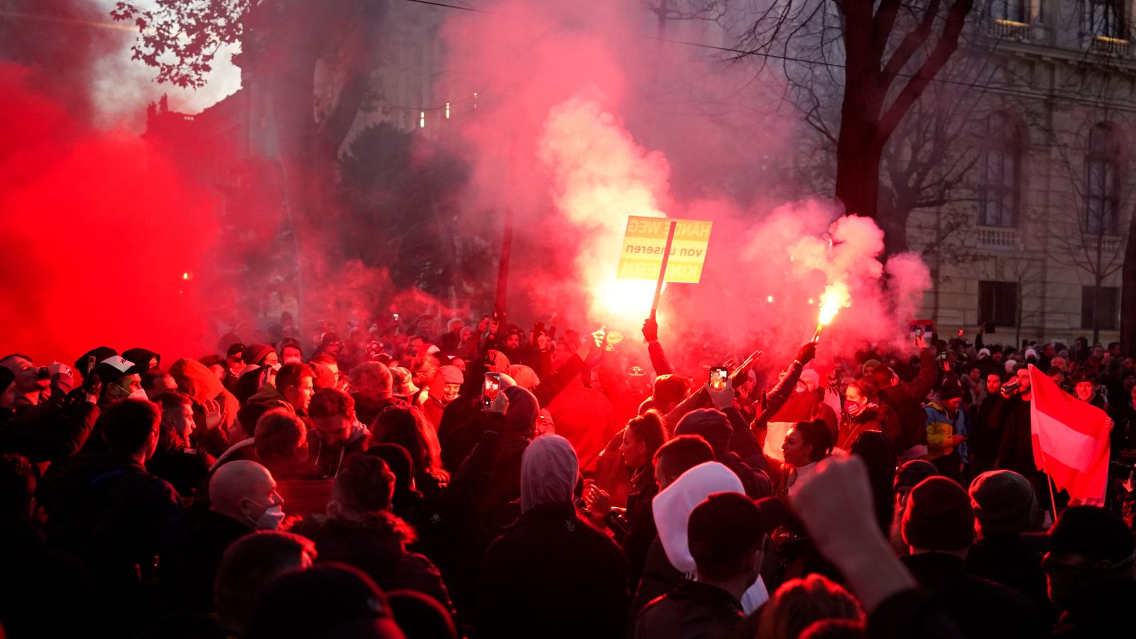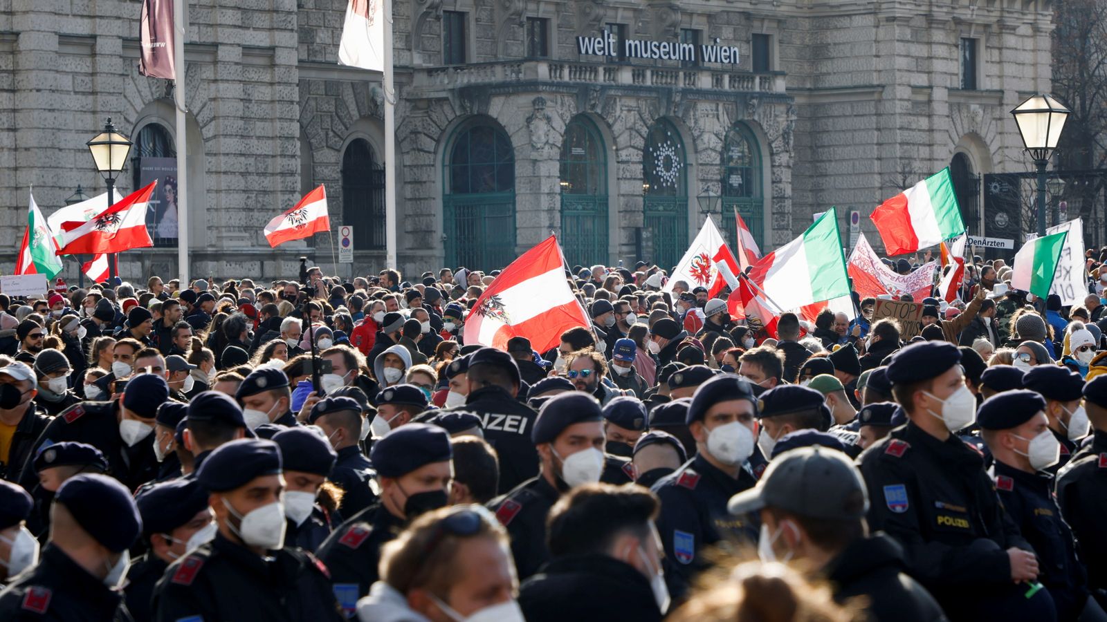 وحسب شبكة "سكاي نيوز" البريطانية، أعرب عشرات الآلاف عن غضبهم في العاصمة النمساوية بعد أن أعلنت الحكومة إغلاقًا على مستوى البلاد وقالت إن التطعيم ضد فيروس كورونا سيصبح إلزاميًا بموجب القانون العام المقبل، وألقى باللوم في ارتفاع أعداد المصابين في البلاد على أولئك الذين فشلوا في تلقي اللقاح.