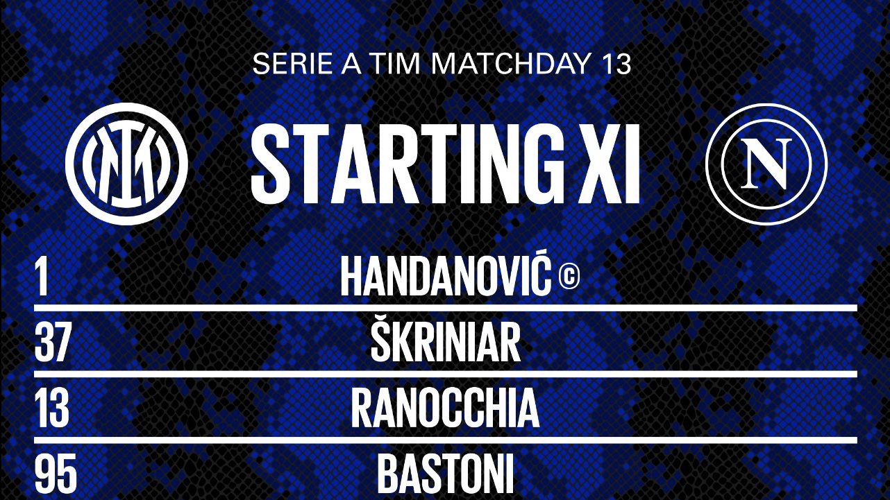أعلن المديران الفنيان “سيمونى إنزاجى” و"لوتشيانو سباليتى"، تشكيل فريقيهما إنتر ميلان ونابولى على ملعب "جيوزيبى مياتزا"، ضمن منافسات الجولة الثالثة عشرة من عمر الدوري الإيطالي "الكالتشيو".