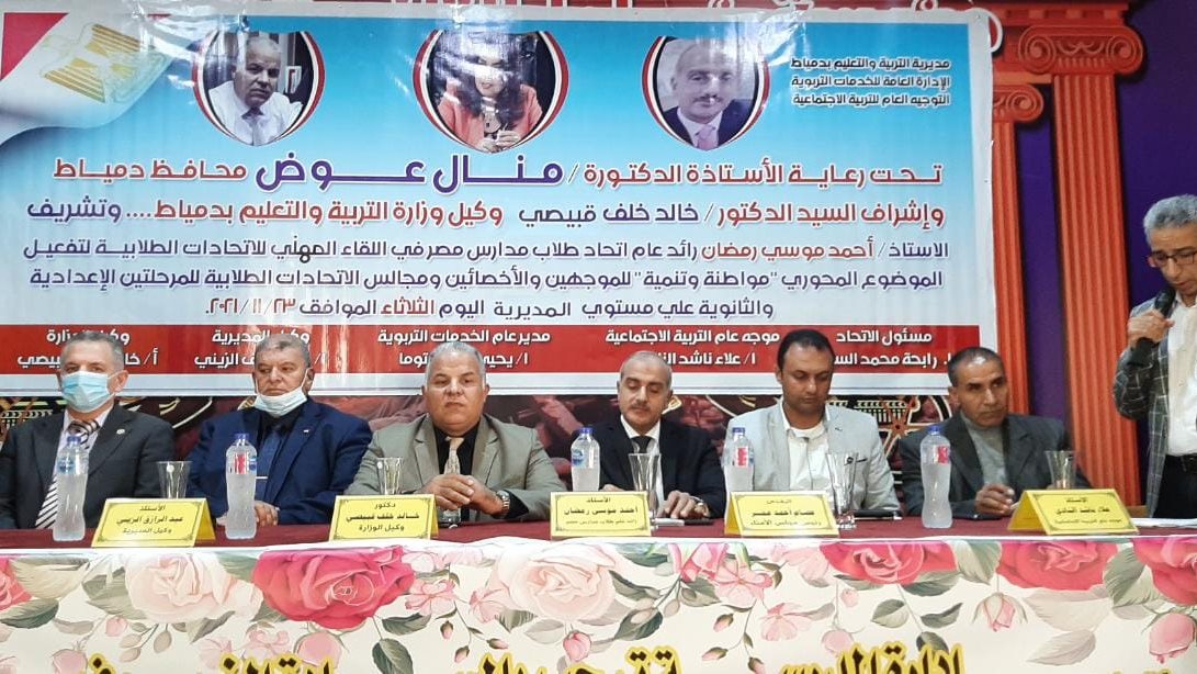 كما أشاد موسى بالتوأمة بين مجلس أمناء المحافظة وتعليم دمياط مقدما الشكر والتقدير لعصام عمر رئيس المجلس، وتعاون جميع القيادات التعليمية لإظهار تعليم دمياط عامة وملتقى اليوم بصفة خاصة على الوجه الأمثل.