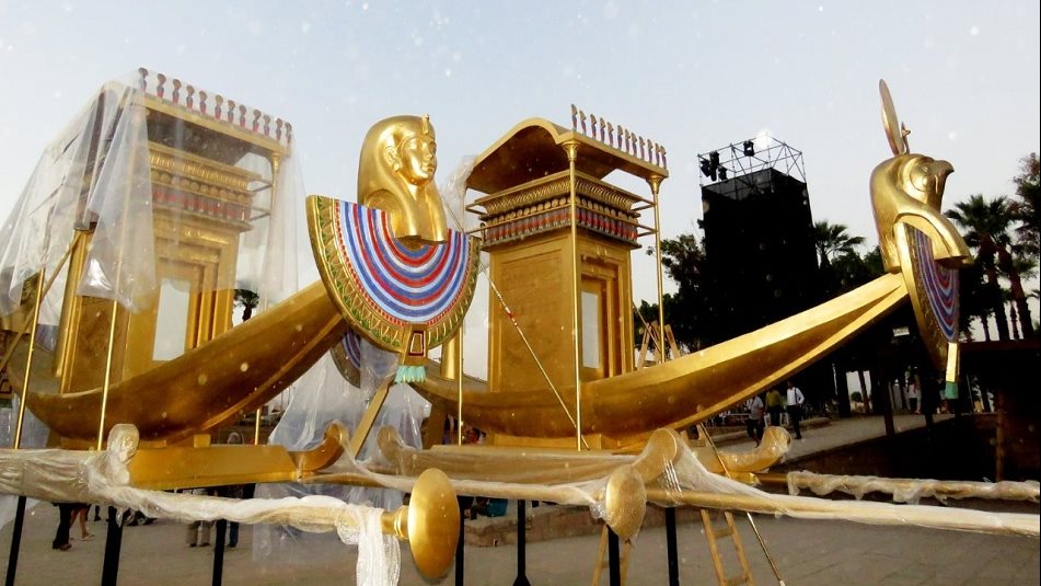 وشهد الحفل، الذي حضره الرئيس عبد الفتاح السيسي، مسيرة وأوركسترا وراقصين بالزي الفرعوني عرضوا الطقوس القديمة خلال مهرجان الأوبت.