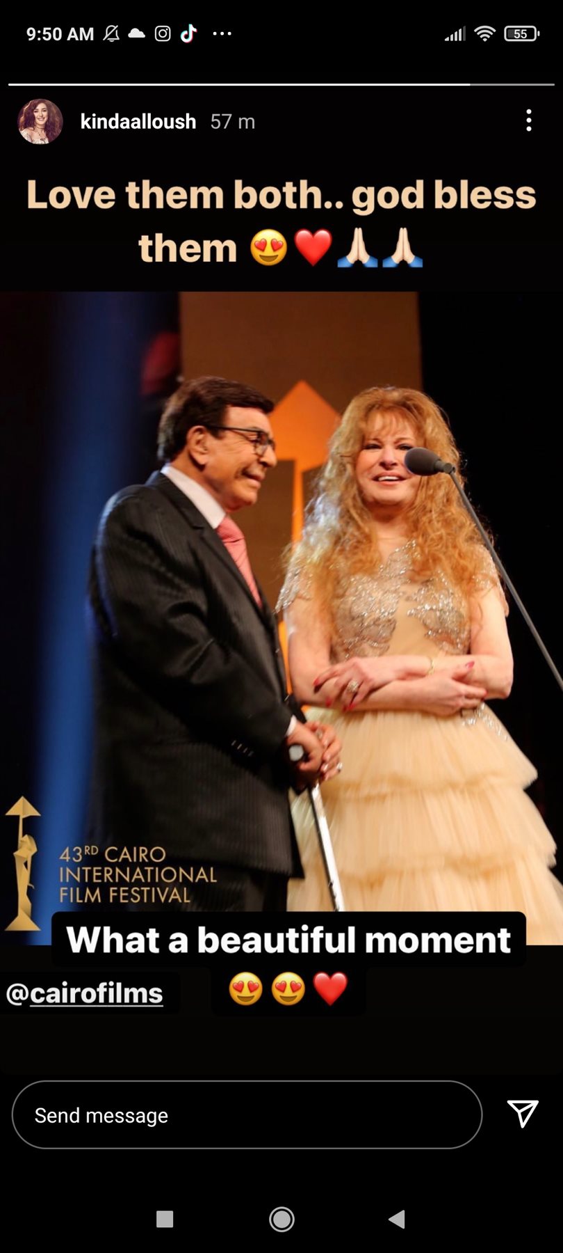 وظهر فى الصورة كلا من الفنانة نيللي و الفنان سمير صبري، من مهرجان القاهرة السينمائي، وعلقت كندة علوش على الصورة: “بحبهم هما الاتنين، ربنا يحفظهم”.