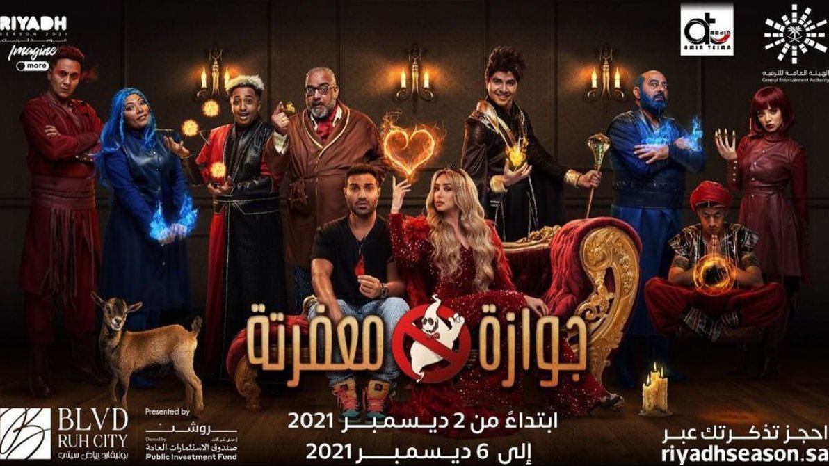 وكتب فهمي من خلال البوستر: "إنتظرونا في مسرحية #جوازة_معفرتة في موسم الرياض في #بوليفارد_رياض_سيتي ".