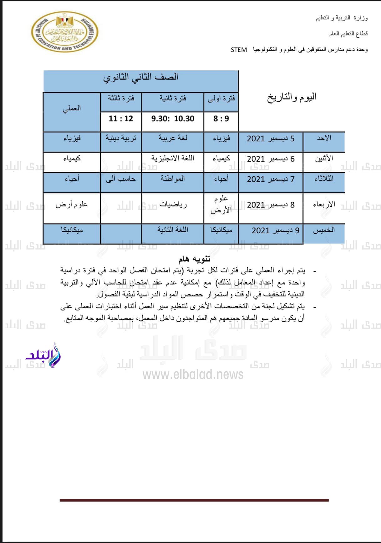 وقالت وحدة مدارس المتفوقين في العلوم والتكنولوجيا بوزارة التربية والتعليم ، أنه سيتم اجراء امتحانات العملي على فترات لكل تجربة ، حيث يتم امتحان الفصل الواحد في فترة دراسية واحدة مع إعداد المعامل لذلك ، مع امكانية عدم عقد امتحان للحاسب الآلي والتربية الدينية للتخفيف في الوقت واستمرار حصص المواد الدراسية لبقية الفصول