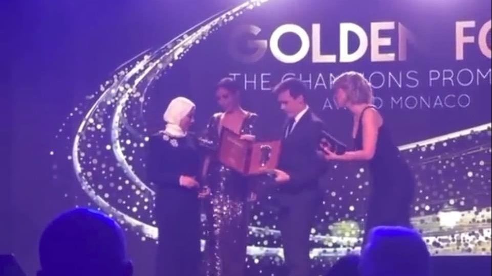 وعلى الرغم من وجود مو صلاح في مكان الاحتفال، إلا انه قدم زوجته ماجي لاستلام الجائزة نيابة عنه، في موقف أشاد به جمهور محمد صلاح في كل أنحاء العالم.
