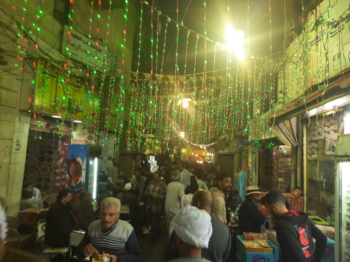 وتزين مسجد وضريح الإمام الحسين بالأنوار المختلفة ابتهاجاً بالذكرى المباركة، حيث يتنافس المحبين الذين جاءوا من كل بقاع مصر والعالم العربي لإحياء الذكرى على توزيع النفحات وسقاية الماء، وغيرها من الأمور التي اعتاد الصوفية على تسميتها بالنفحات.