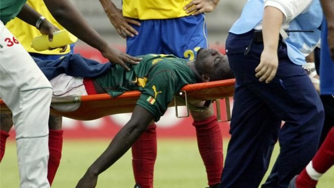 - سقط اللاعب الكاميروني مارك فيفيان فوي خلال مواجهة منتخب بلاده أمام الكاميرون في نصف نهائي كأس القارات عام 2003، والتي استضافتها فرنسا.