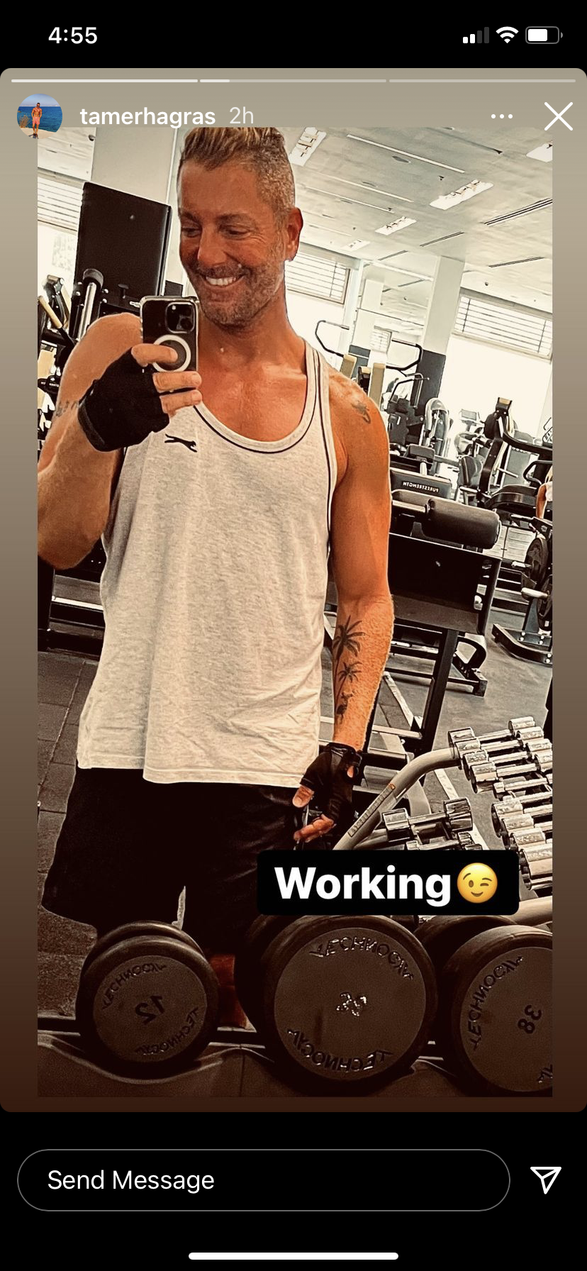 وظهر تامر هجرس ، فى الصورة و هو يستعرض عضلاته من الجيم، مما أثار إعجاب متابعيه.