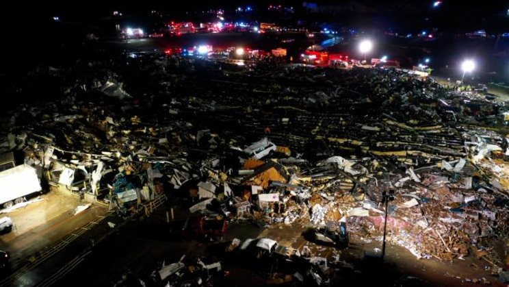 وأضافت أن ما لا يقل عن 13 شخصاً قتلوا في ولايات أخرى ضربتها العاصفة، بما في ذلك مستودع شركة "أمازون" في إلينوي، ليصل العدد الإجمالي للقتلى إلى 83 شخصا.