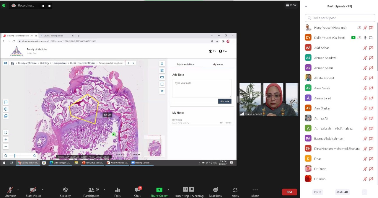 نظمت الوحدة المركزية للتعلم الالكتروني بجامعة عين شمس جلسات تدريبية اونلاين علي منظومة الميكروسكوب الافتراضي ومنصة الشرائح الافتراضية والصور عالية الدقة بدءا بتفعيل المنصة ودمجها في مقررات الطلاب علي منصات التعلم الالكتروني ASU2Learn.