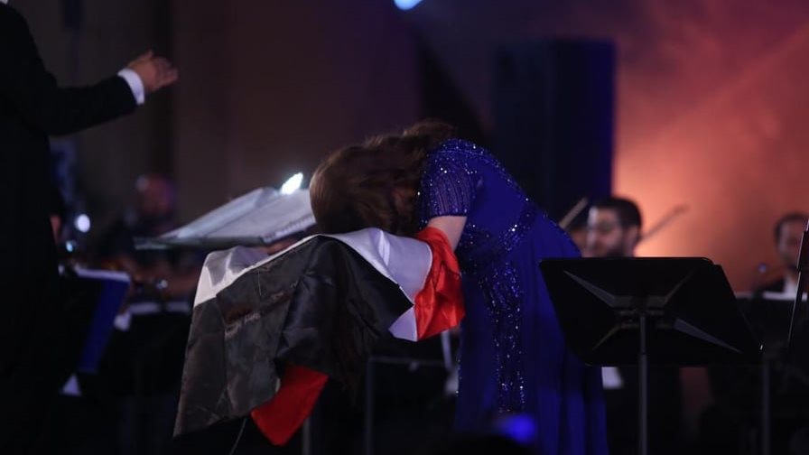 وقالت إن أعماله ستبقى خالدة يتذكرها الجمهور لسنوات طوال، بعدها وبمصاحبة أوركسترا الموسيقية بقيادة المايسترو نادر عباسي، روت حكاية إسطورية ضمت فصولا من أعمالها المميزة التى منحتها لقب ملاك الطرب وبصوتها الساحر شدت بـ “بهية، عم يسالوني، عيناك ليال صيفية، غنى للحب، اسمع قلبي، لا تغضبي، مفترق الطرق، العالم النا، لا تسأل، كلمات، لون معي الأيام، مطرحك بقلبي، حي ع الفلاح” التى احتضنت خلالها العلم المصري، وأثارت الحماسة الوطنية لدى الحضور الذى تفاعل معها.