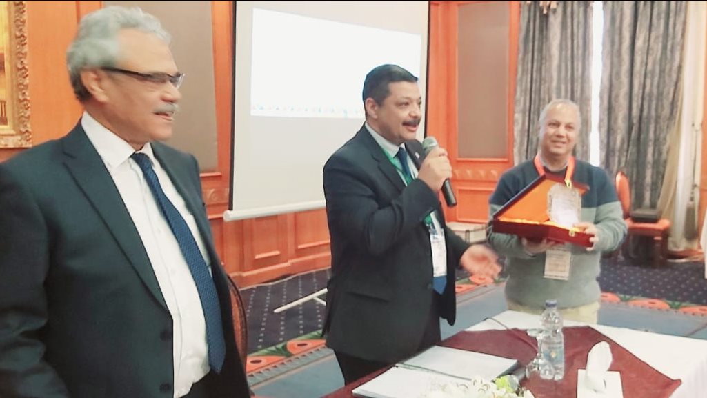 كرم الدكتور عمرو الحاج رئيس هيئة الطاقة الذرية والدكتور سالم الحامد رئيس الهيئة العربية للطاقة الذرية ، الدكتور طارق عبد العزيز المتحدث الاعلامى للهيئة لبلوغه سن التقاعد .