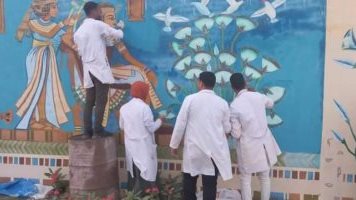وكان قد قام طلاب كلية الآثار بجامعة أسوان قسم الترميم بالإنتهاء من رفع كفاءة الجداريات الواقعة بمدخل مطار أسوان التى سبق ونفذها طلاب كلية التربية النوعية من رسومات طبيعية علي الجداريات وبسبب تعرضها للشمس والأتربة.