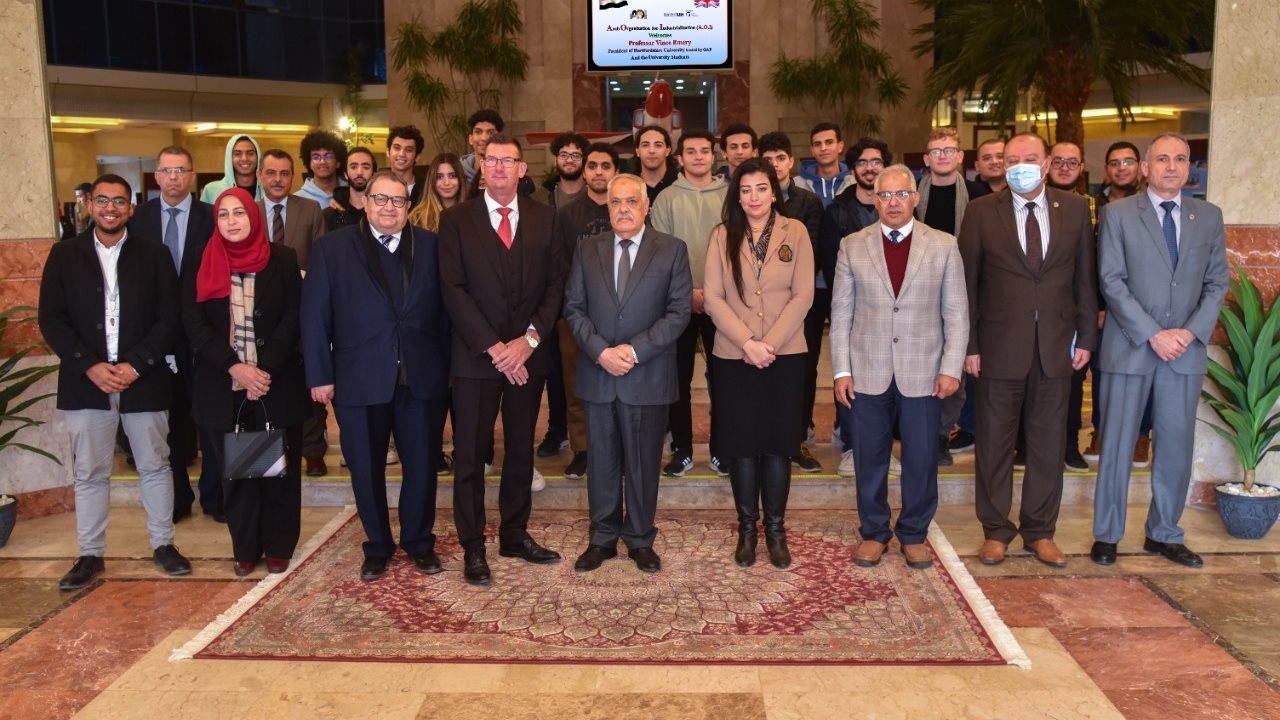 جاء هذا في إطار زيارة أساتذة وطلاب جامعة هيرتفوردشاير البريطانية بالعاصمة الإدارية الجديدة، لمقر رئاسة العربية للتصنيع وتفقد عدد من وحداتها الصناعية ، بمشاركة كل من الدكتور"فنسنت إيميري" رئيس جامعة "هيرتفوردشاير" البريطانية، والمهندس" علاء عطا " الرئيس الأكاديمي للجامعة، وعدد من عمداء الكليات، فضلا عن عدد من طلابها في تخصصات علمية مختلفة.