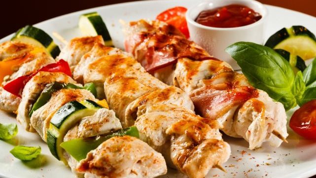 * ترفع الفخذة على صينية اخرى و يترك الخضار على النار وتدهن بصلصة مع زيت