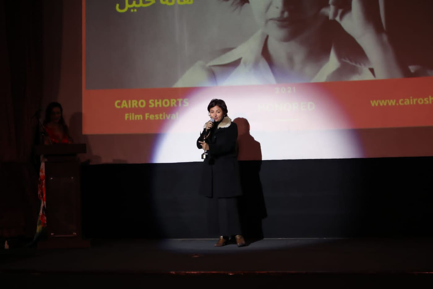 وقدمت الفنانة سلوى محمد علي تكريم المخرجة هالة خليل التي القت كلمة وقالت":اشكر المهرجان على التكريم، والافلام القصيرة لها فضل كبير على في مهنتي، واتمنى اعمل فيلم قصير وادعو شريف مدكور لانتاج فيلم بياع الورد".