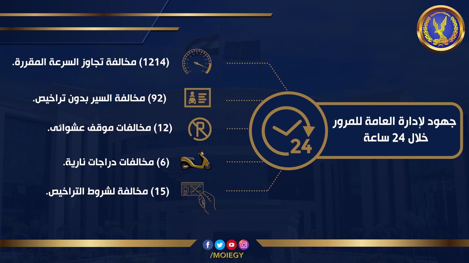 وضبط 1522 مخالفة مرورية متنوعة، وفى مجال مكافحة جرائم الهجرة غير الشرعية وتزوير المستندات تم ضبط 7 قضايا.