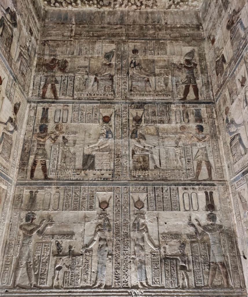وتبين النقوش الموجودة على الجدران الداخلية لـ معبد دندوه ، القياصرة الرومان أغسطس، تبريوس و نيرو يقدمون القرابين إلى الآلهة على النحو الذي كان يتبعه قدماء المصريين.