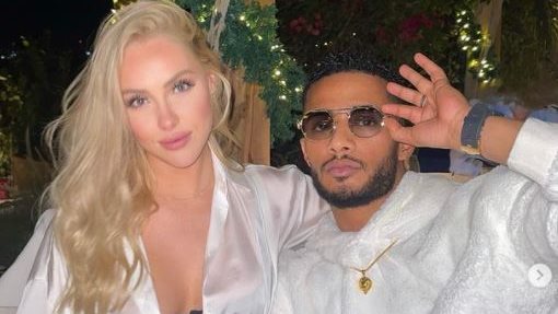 وظهر محمد رمضان في الصور وهو بصحبة موديل أمريكية .