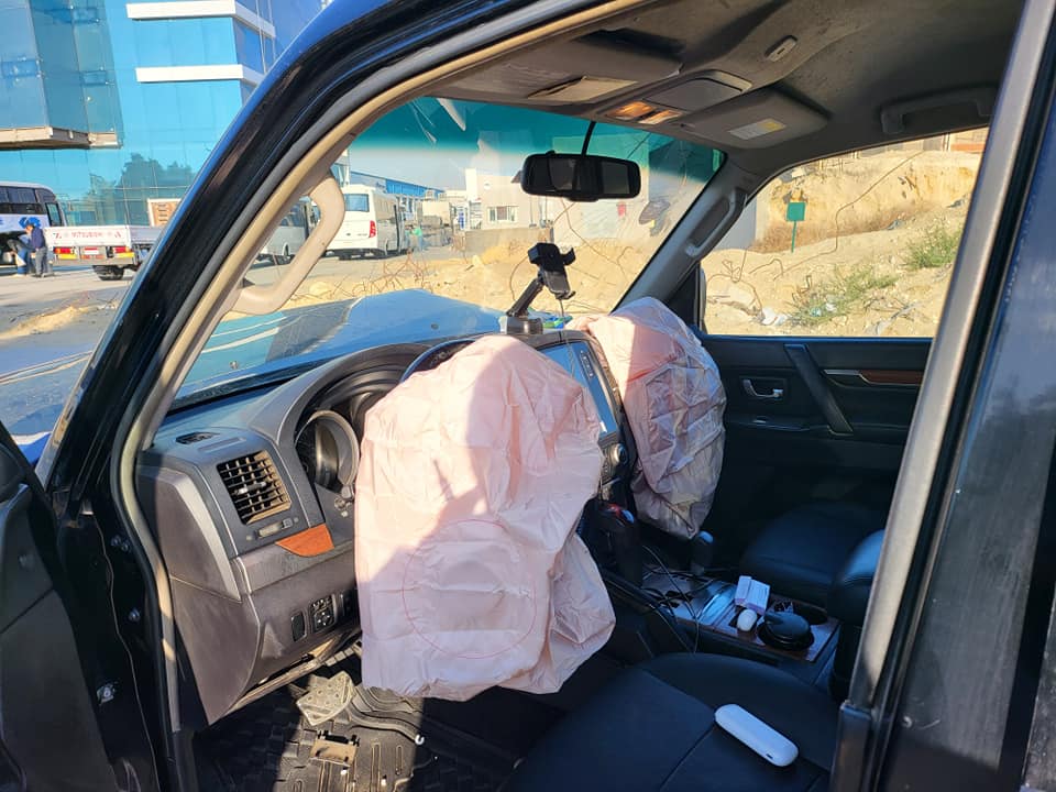 ونشر عمرو محمود ياسين صورا لسيارته عبر صفحته على موقع التواصل الاجتماعى فيسبوك وعلق : “الحمدلله قدر الله وما شاء فعل وانا بخير الحمدلله”.