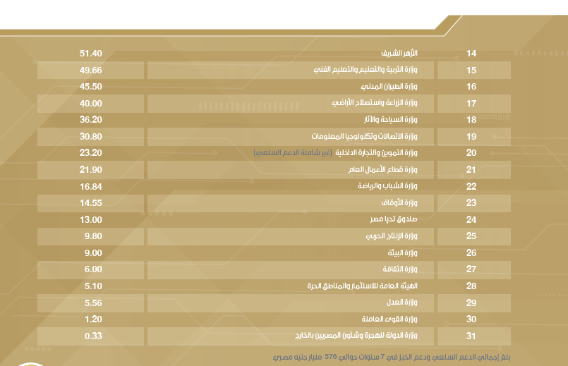 30.80 مليار جنيه لصالح وزارة الاتصالات وتكنولجيا المعلومات