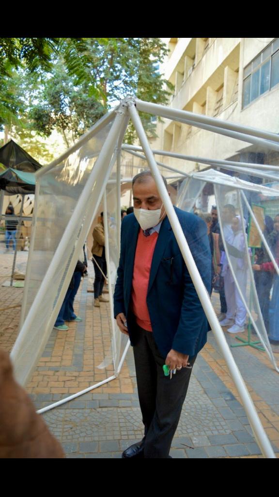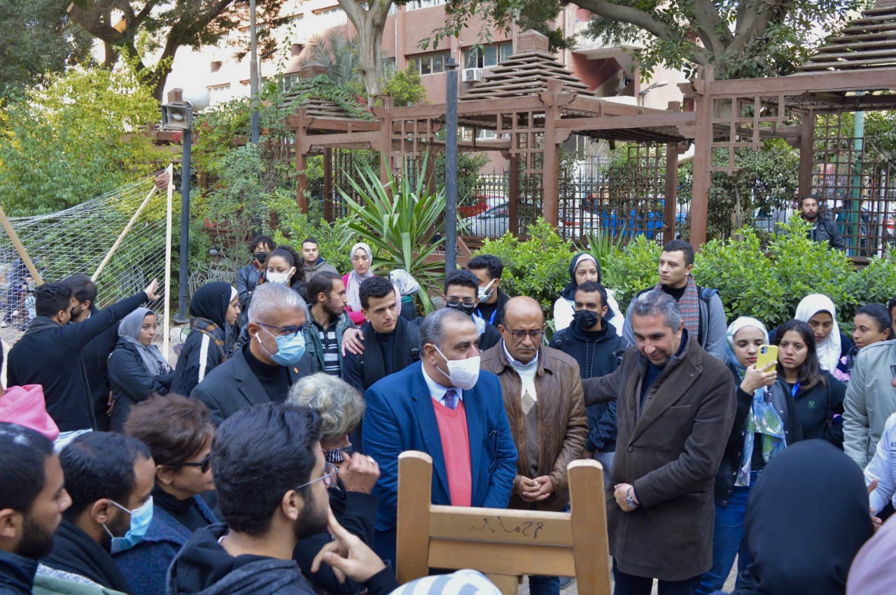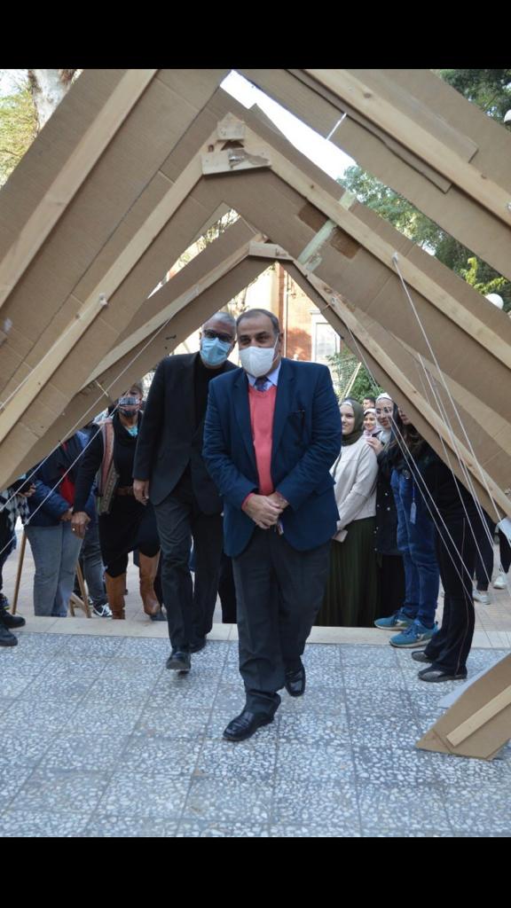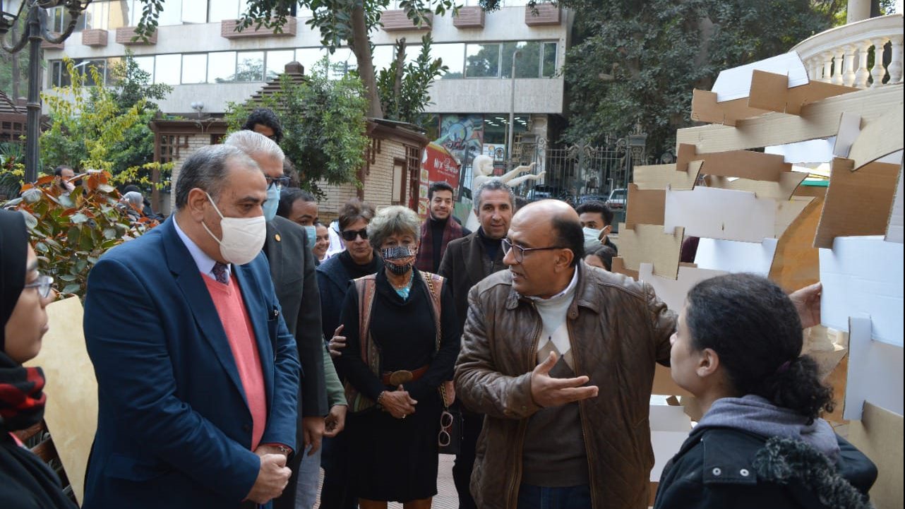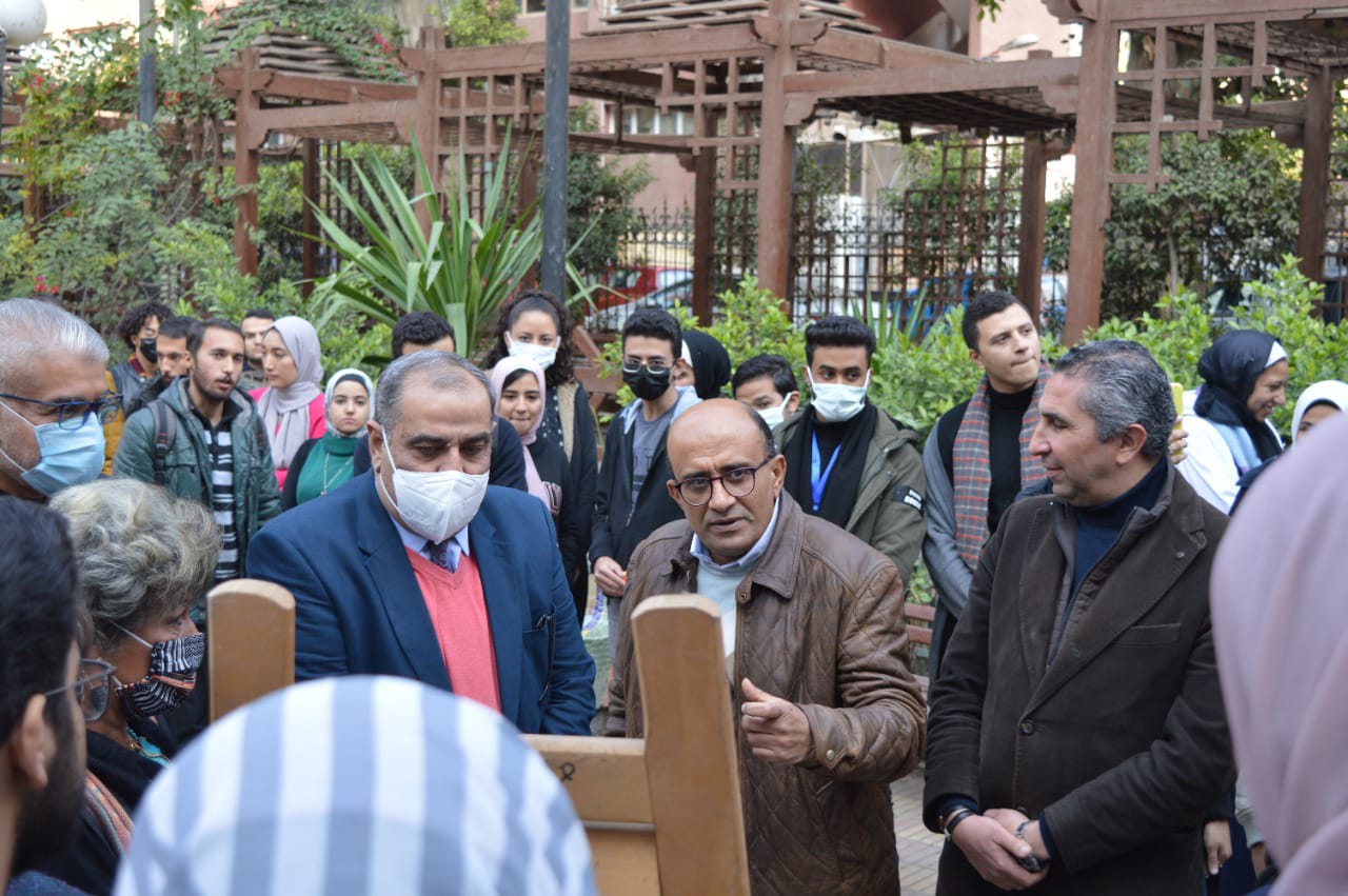 وجاءت الجولة بمرافقة الدكتور عمرو سامي عميد الكلية، و الدكتورة أمنية يحيى وكيل الكلية لشئون خدمة المجتمع وتنمية البيئة، و الدكتور ياسر السيد أستاذ مادة تنفيذ وماكيت بقسم العمارة و المشرف على الأعمال الفنية للطلاب، و الدكتورة أمال عبده الأستاذ المتفرغ بقسم العمارة، و الدكتور أحمد حسني رضوان.