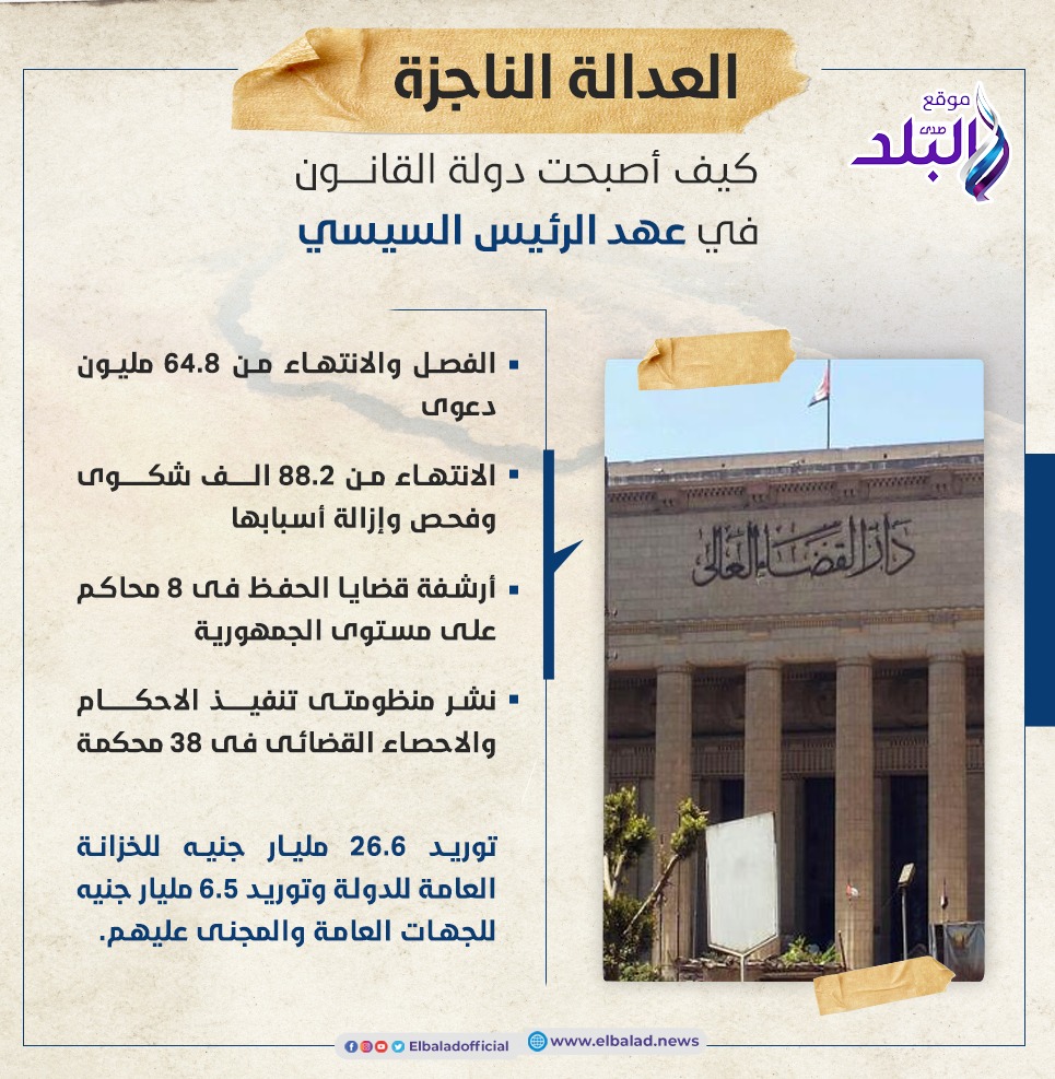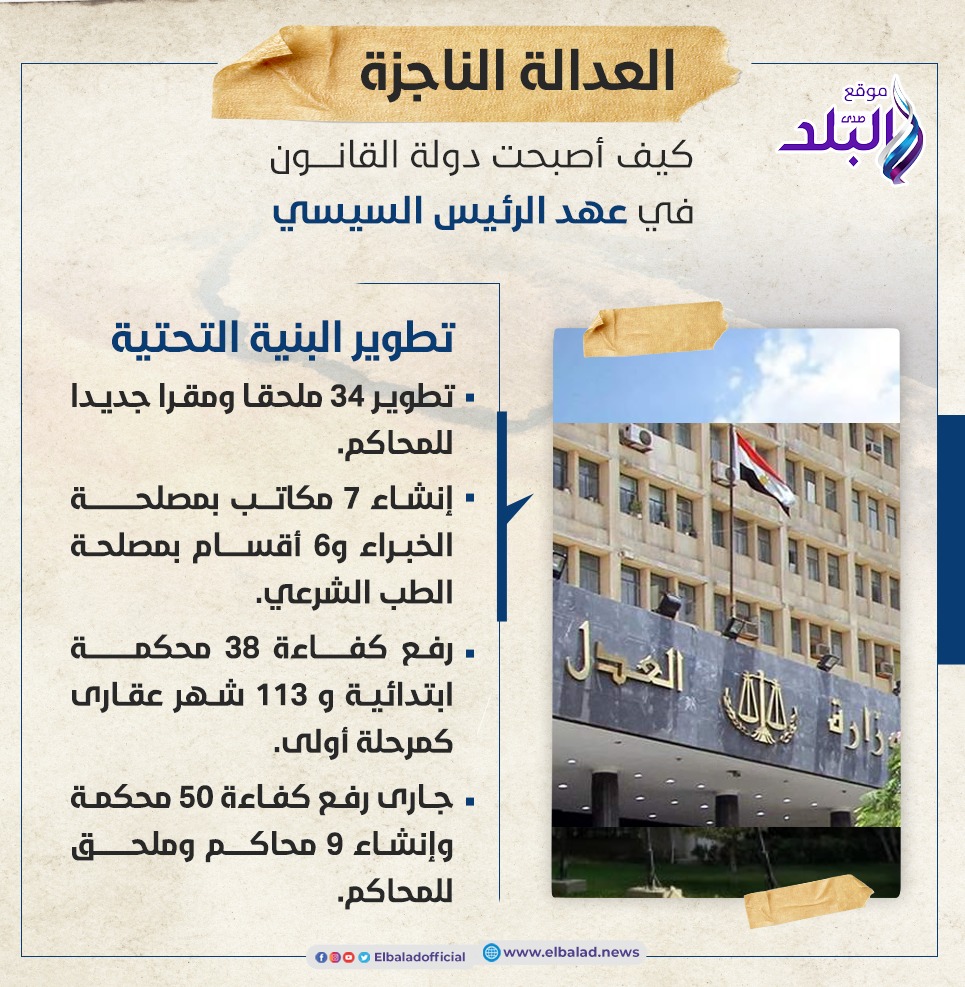قبل ٧ سنوات كانت دور العدالة تشهد تكدسا وضعفا في البنية التحتية لجميع المحاكم ومقار الشهر العقارى بالمحافظات، فضلا عن عدم إدخال التحول الرقمي والالكتروني في تطوير العمل بالمحاكم