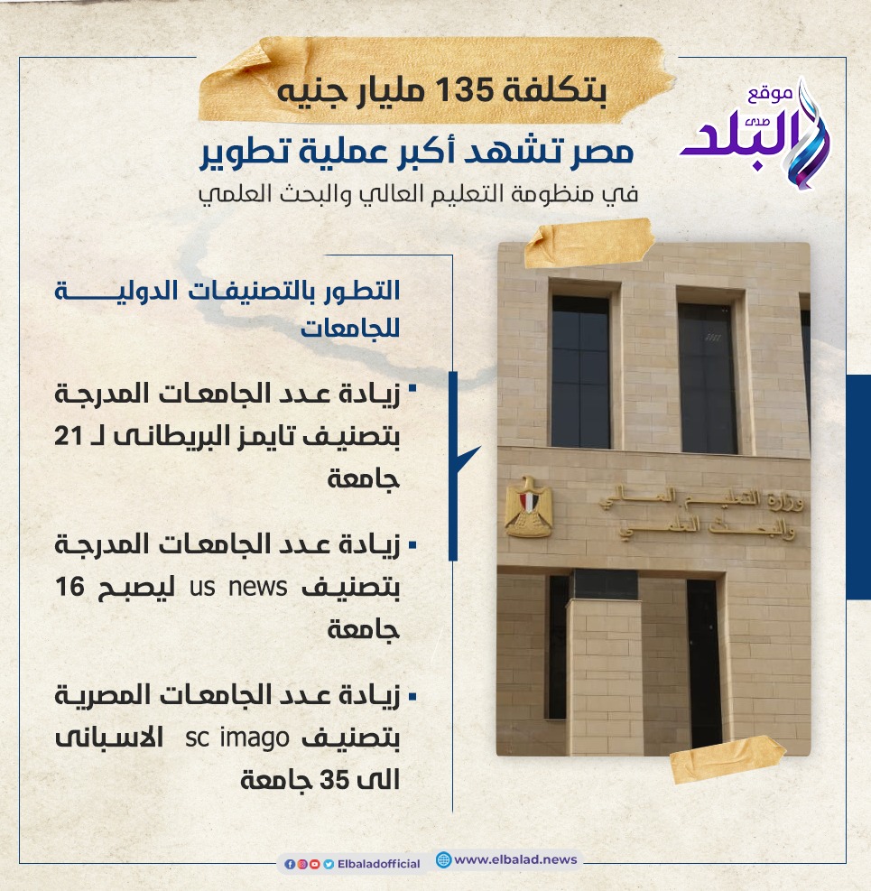 - زيادة عدد الجامعات المصرية بتصنيف sc imago الاسبانى الى 35 جامعة بدلا من 23