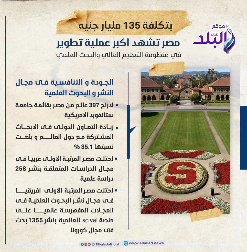 - ادراج 397 عالم من مصر بقائمة جامعة ستانفورد الامريكية