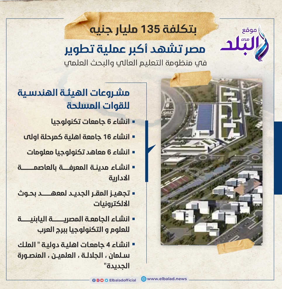 - انشاء 4 جامعات أهلية دولية الملك سلمان ، الجلالة ، العلمين ، المنصورة الجديدة ”