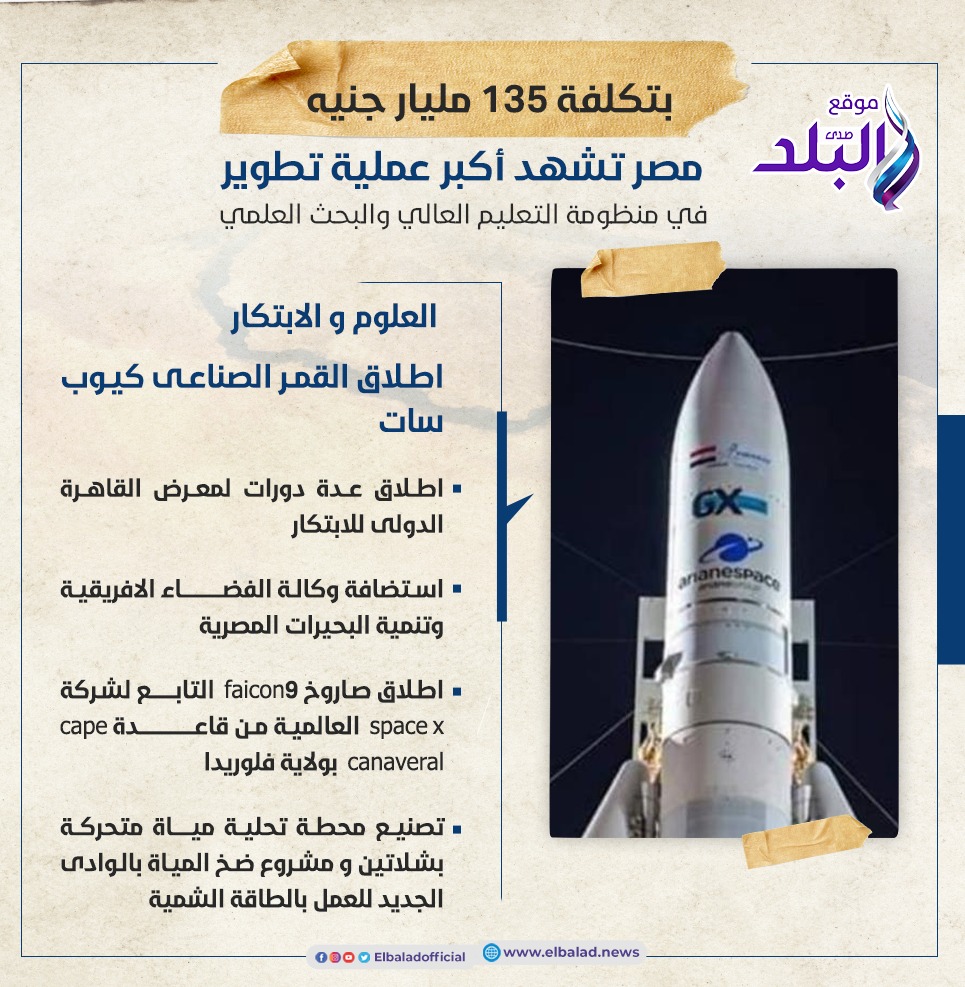 - اطلاق مبادرة science up بتمويل 75 مليون جنيه