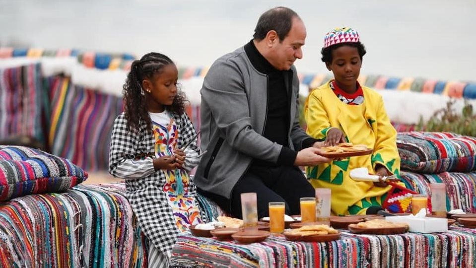 أهتم الرئيس عبد الفتاح السيسي بلقاء الاهالي والحديث معهم في لقاء مفتوح، للإطمئنان على أحوالهم وتناول الغداء معهم، من اكلاتهم النوبية البسيطة من الفطير والعسل.
