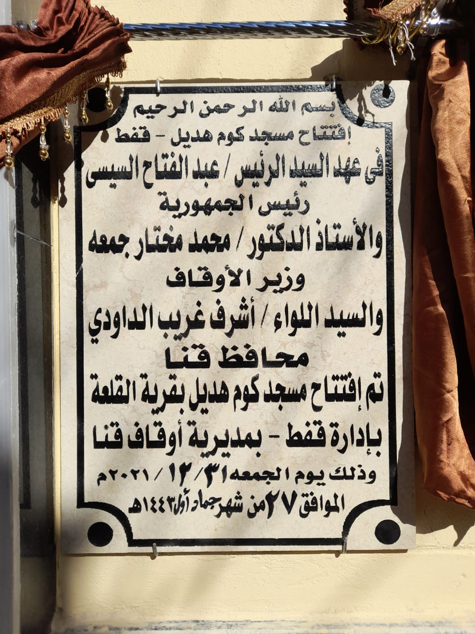 ودع أهالى قرية القلعة، التابعة لمركز قفط، بمحافظة قنا، عام ٢٠٢١ بافتتاح مسجد "كوم هديل" الذى تأسس بالجهود الذاتية، بتكلفة تجاوزت ٤ ملايين جنيه، حرصاً من أبناء القرية على وداع العام المنتهى بإعمار بيت من بيوت الله.