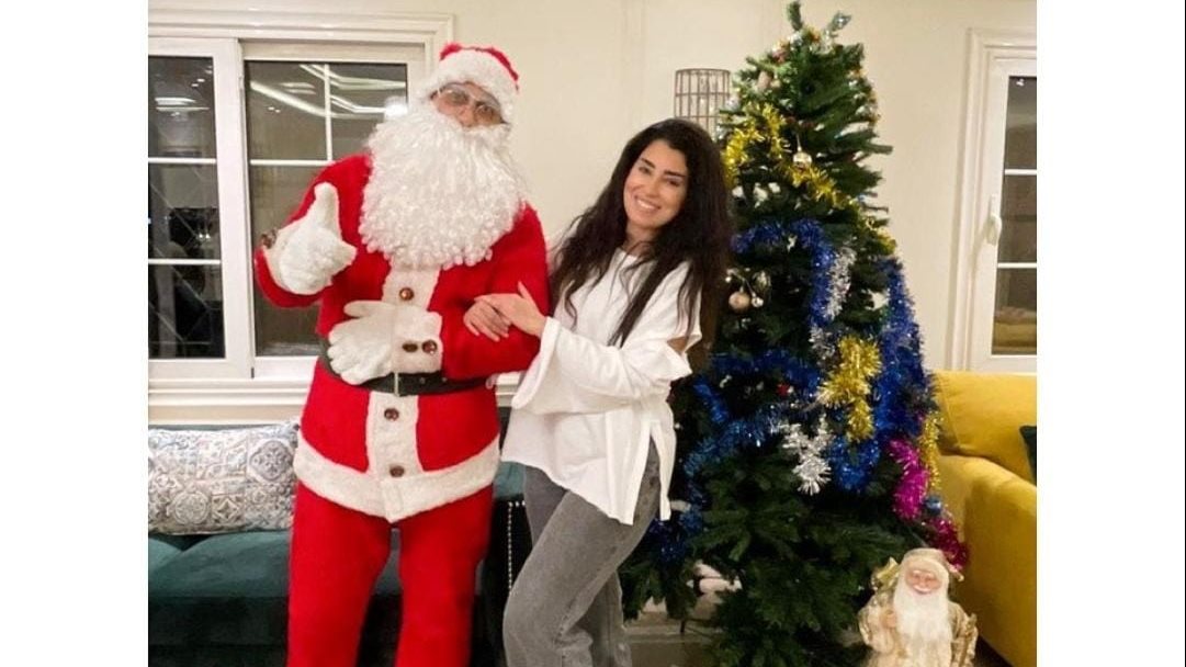 وظهرت الفنانة برفقة بابا نويل وخلفها شجرة الكريسماس ، معلقةً " لإرسال سانتا كل عام لنشر الحب والسعادة في عائلتنا مع هذه الزيارة مذهلة".